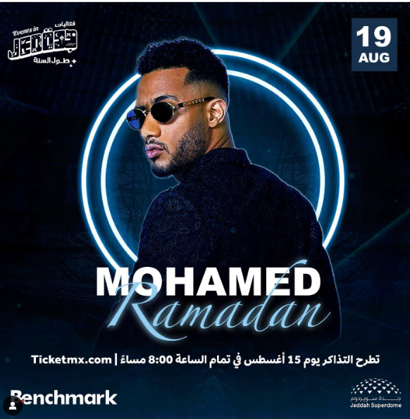 يستعد الفنان محمد رمضان لإحياء حفلًا جديدًا ضمن فعاليات مدينة جدة بالمملكة العربية السعودية، وذلك يوم السبت الموافق 19 أغسطس الجاري.