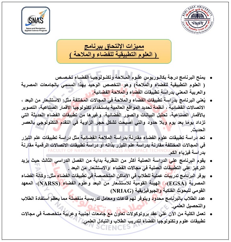 - علوم الملاحة وتكنولوجيا الفضاء بني سويف