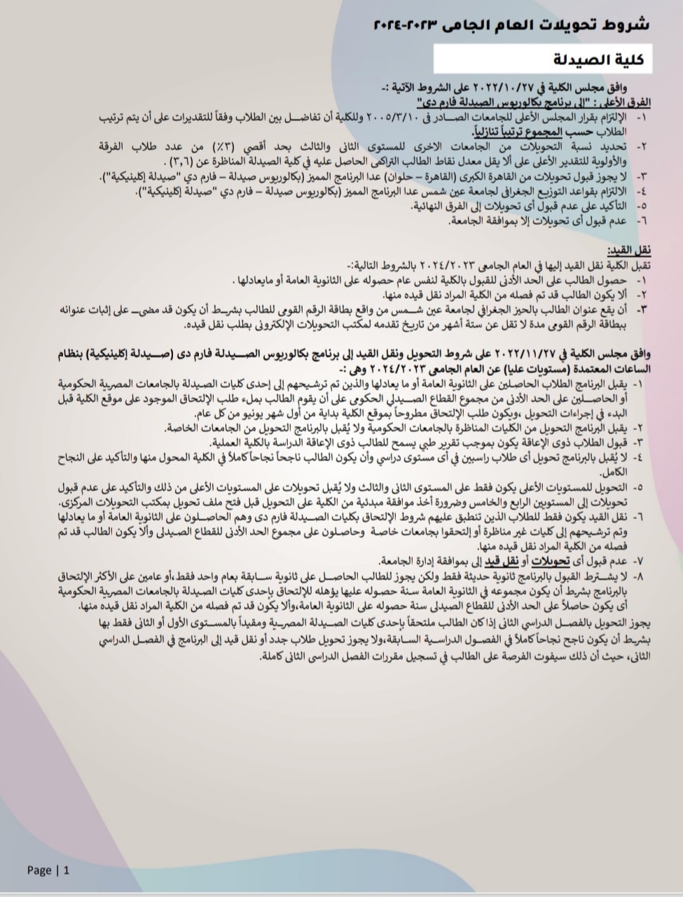 شروط التحويلات إلى كلية الصيدلة لعام 2023-2024