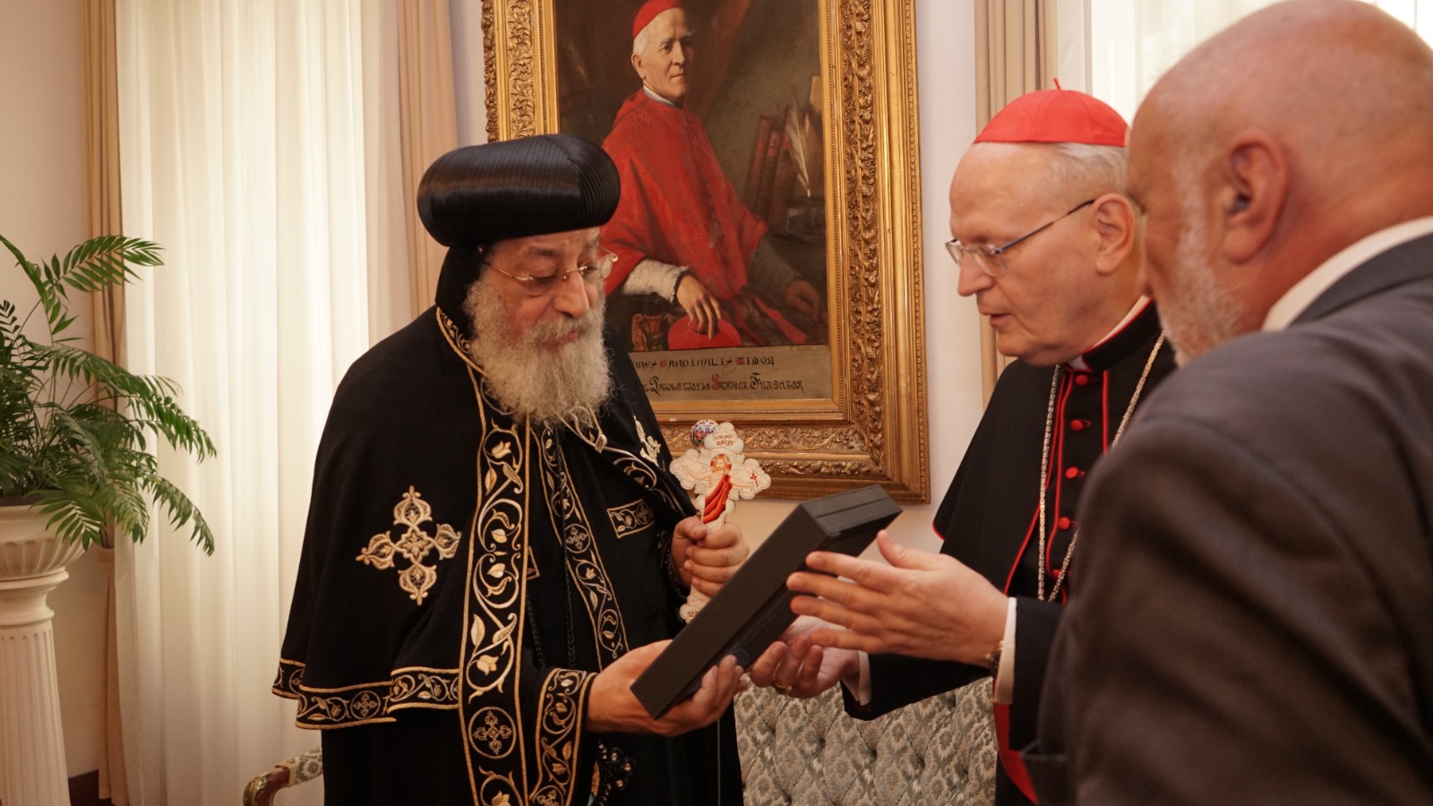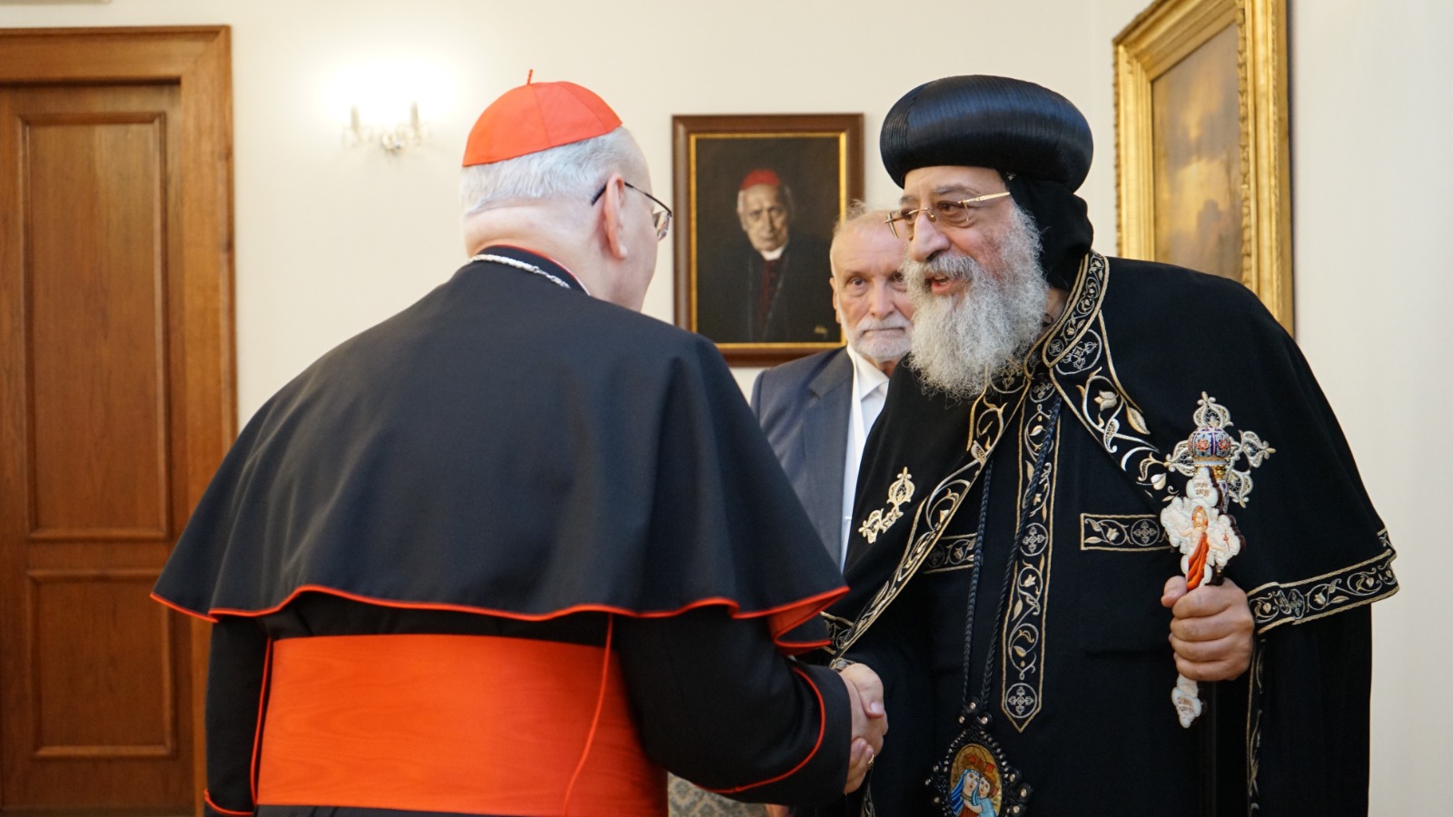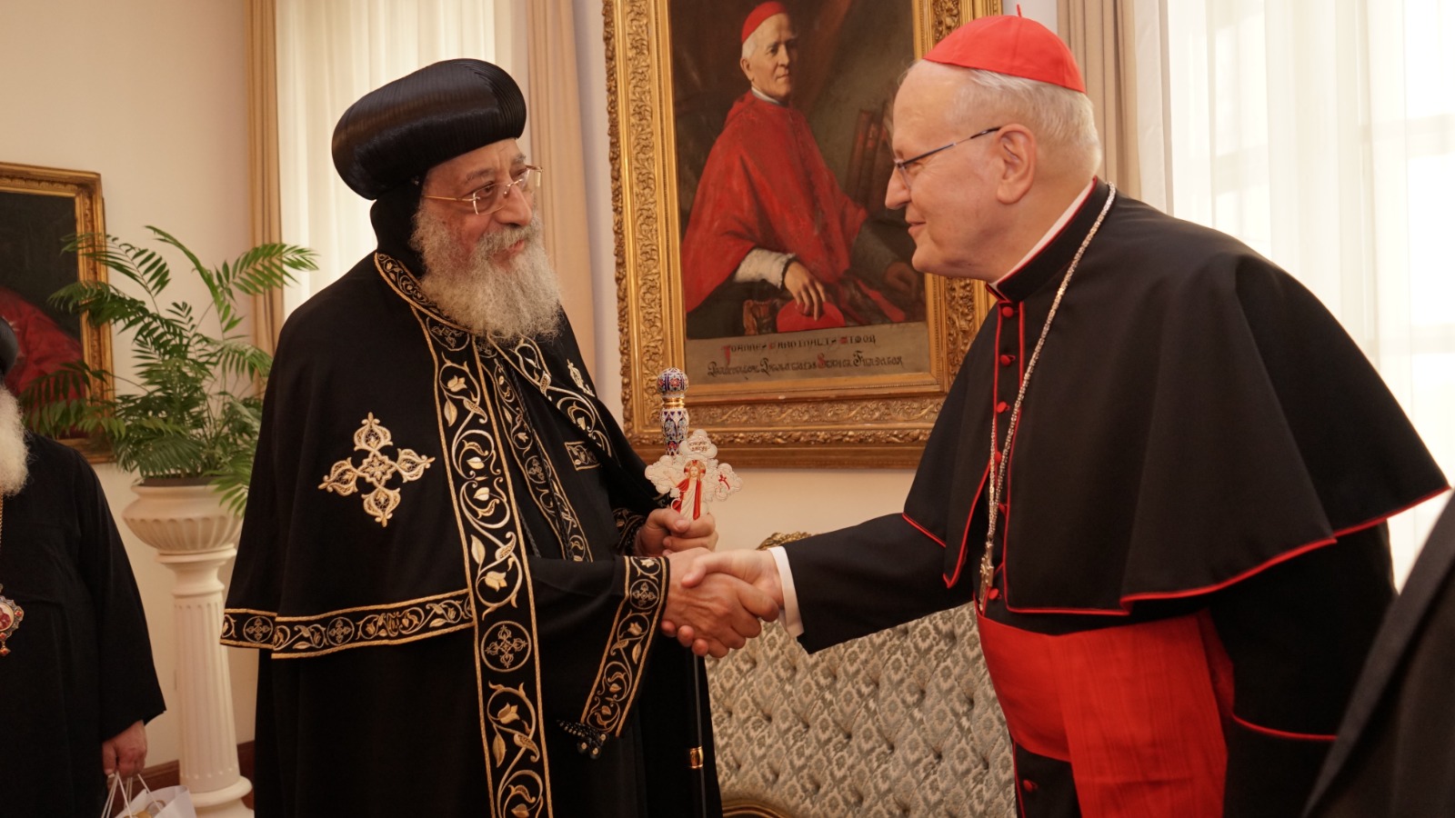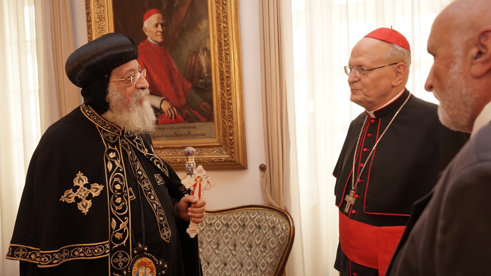 وأعرب قداسة البابا في بداية اللقاء عن سعادته بهذا اللقاء، مشيرًا إلى أنه زار الڤاتيكان في مايو الماضي، بمناسبة مرور 50 سنة على العلاقات بين الكنيستين القبطية والكاثوليكية، وأنه التقى قداسة البابا فرنسيس الذي تربطه بقداسته علاقة قوية، وأكد قداسته على أن الكنيسة القبطية الأرثوذكسية كنيسة شاهدة للمسيح، وأن العلاقات قوية التي تربط الكنيسة برئيس الجمهورية وإخوتنا المسلمين، وأن الأقباط في مصر عددهم 15 مليون قبطي.