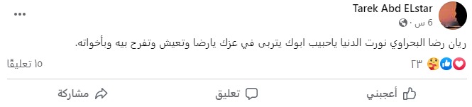 وكتب المنتج طارق عبد الستار منشورًا عبر حسابه الشخصي بـ فيس بوك يهنى فيه البحراوي، قال فيه: ريان رضا البحراوي، نورت الدنيا يا حبيب أبوك يتربى في عزك يا رضا، وتعيش وتفرح بيه وبـ أخواته.