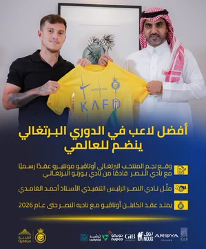 أعلن نادي النصر السعودي، اليوم الثلاثاء 22 أغسطس، التعاقد بشكل رسمي مع البرتغالي أوتافيو مونتيرو، خلال فترة الانتقالات الصيفية الحالية.