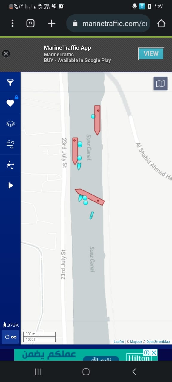 ودفعت الهيئة العامة لقناة السويس عدد من القاطرات البحرية لإعادة عويمها في مسارها الصحيح، بلغت لنحو 5 قاطرات.