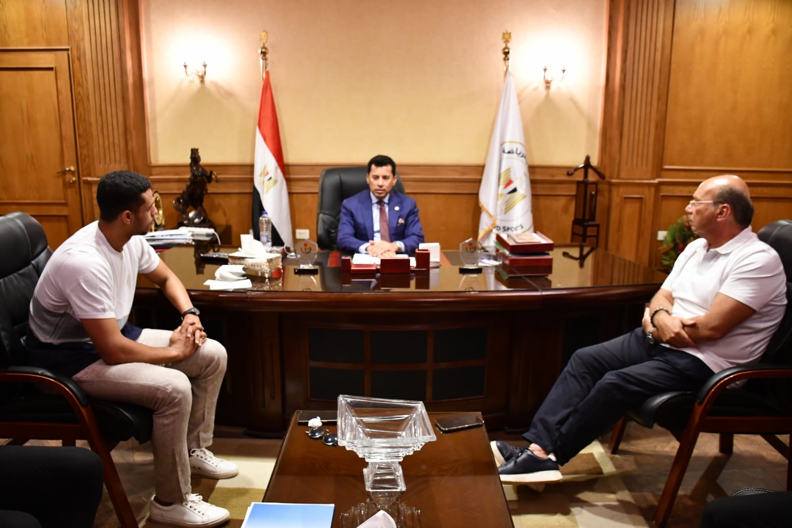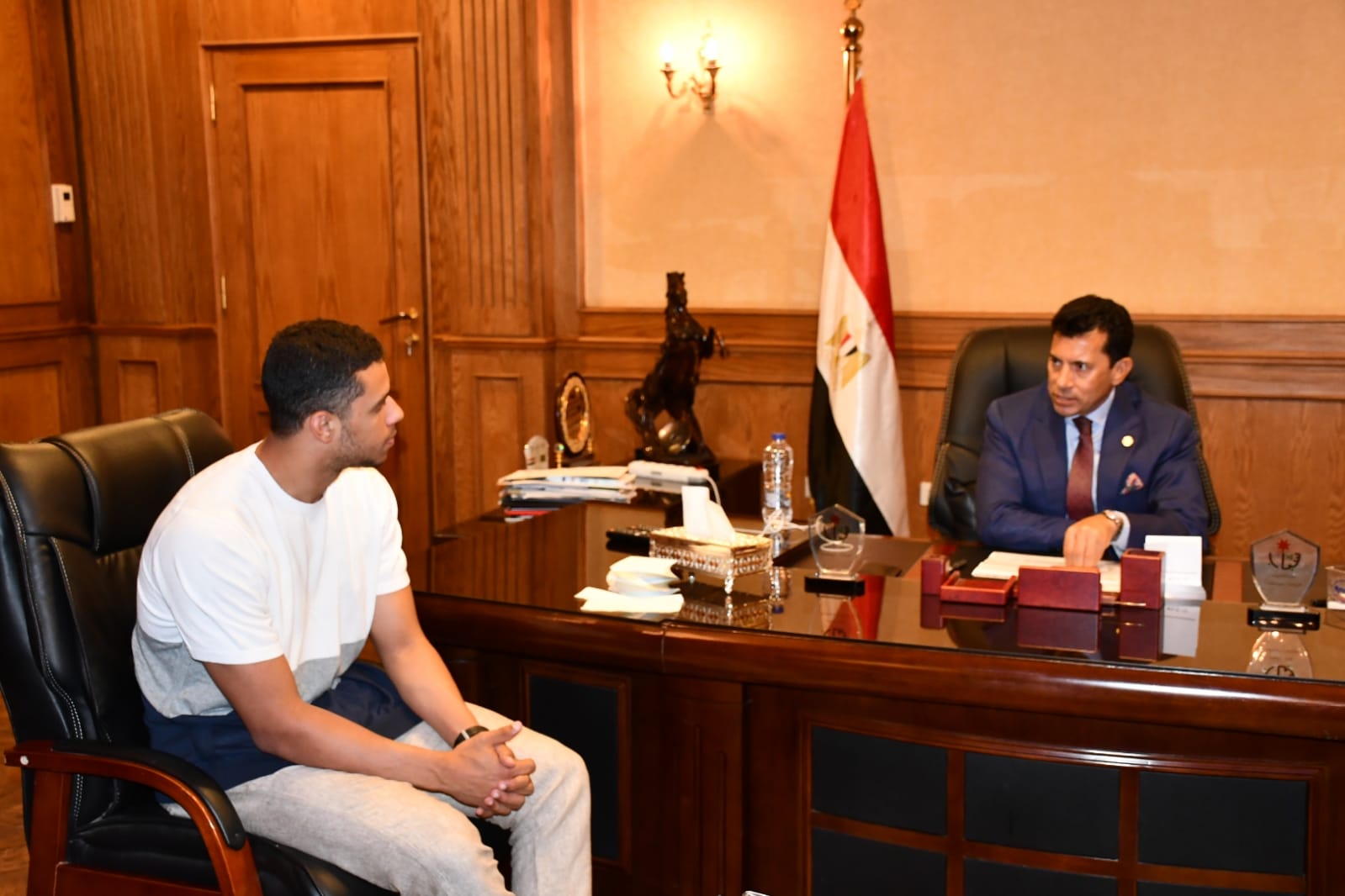 وزير الرياضة يلتقي لاعب الاسكواش مصطفى عسل | صور