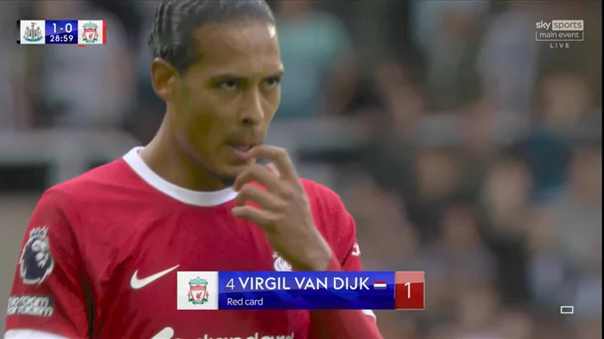 وبدأت المباراة بشكل هادئ من جانب الفريقين ولكن بمرور الوقت بدأت تظهر محاولات من جانب ليفربول، ولكن بالرغم من هذه المحاولات استقبل الريدز الهدف الأول من نيوكاسل في الدقيقة 25 عن طريق أنتوني جوردون بعد خطأ دفاعي، بل وتلقى الريدز ضربة أخرى بطرد فيرجيل فان دايك في الدقيقة 28.