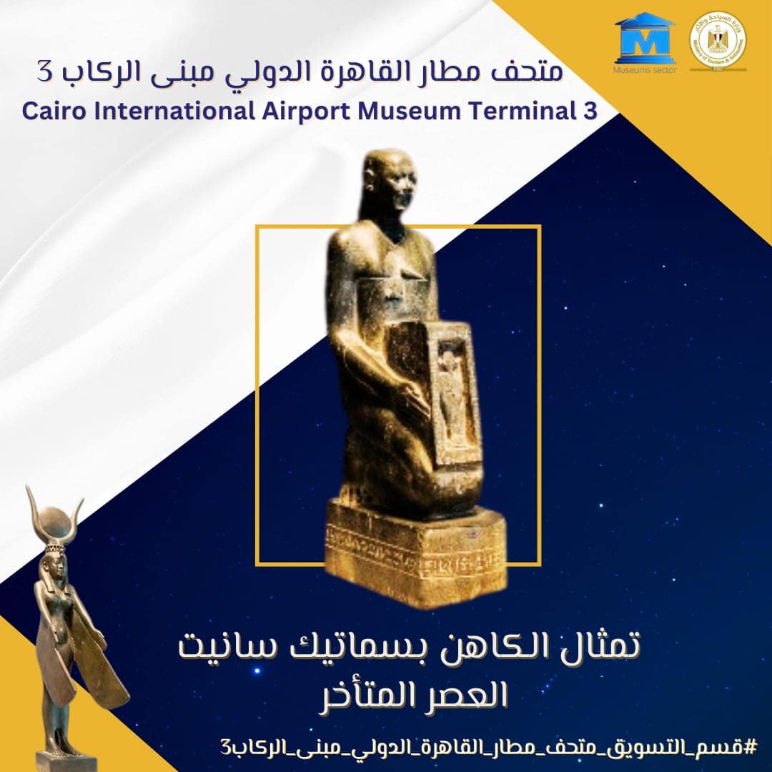 متحف مطار القاهرة الدولي يعلن عن عرض تمثال للكاهن بسماتيك سانيت