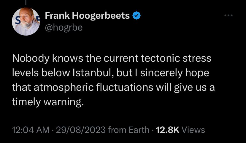 جاء هذا عبر حسابه على موقع إكس - تويتر سابقًا -، مشيرا إلى أنه من المرجح أن يكون السبب الاصطفاف بين الأرض وكل من كوكبي المريخ ونبتون، وكذلك الهندسة القمرية مع نفس الكوكبين.