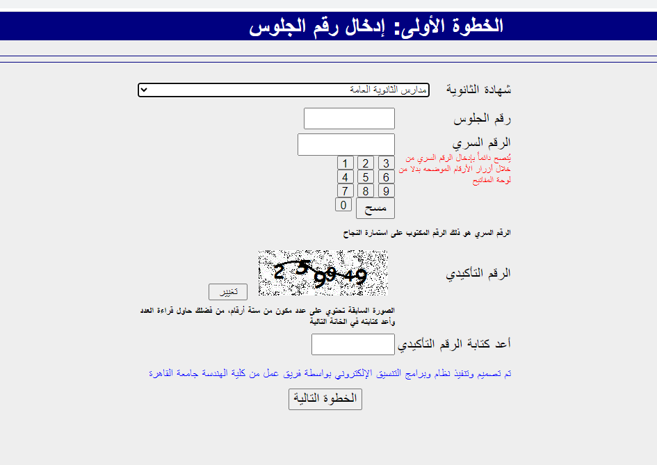 تظهر بعد ذلك الخطوة الأولي والتي تبدأ بإدخال رقم الجلوس، ثم إدخال الرقم السري في الخطوة الثانية، بعد ذلك يقوم الطالب بإدخال الرقم التأكيدي، بعد ذلك تظهر بيانات الطالب وهنا يجب علي الطالب التأكد من تلك البيانات، بعد ذلك يقوم الطالب بترتيب الكليات والمعاهد التي يرغب في الالتحاق بها، وفقا للتوزيع الجغرافي ويصل عدد الرغبات إلى 75 رغبة، وبعد ذلك سوف يضغط على حفظ بيانات ويدخل رقم الجلوس والرقم السري ووضع البريد الإلكتروني ورقم الهاتف الخاص بالطالب والرقم القومي.