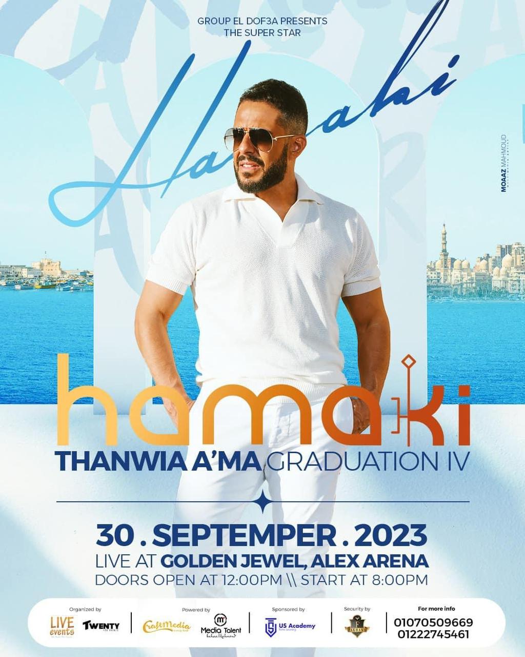 يستعد الفنان محمد حماقي، لإحياء حفل تخرج دفعة طلاب الثانوية العامة 2023، يوم السبت الموافق 30 سبتمبر في إحدى الفنادق بالإسكندرية.
