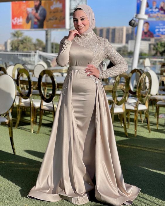 - عند ارتداء فستان شفاف باللون البيج، يجب ارتداء توب داخلي يحتوي لمعة أو دانتيل أو برونز بسيط ليبدو غير لون الجسم وحتى لا تفسد طلتك بالحجاب.