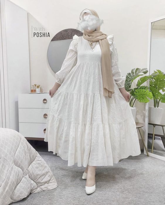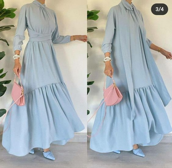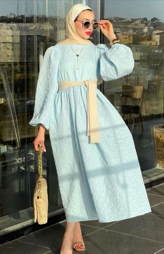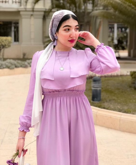 - احرصي على اختيار موديل يتوافق مع شكل جسمك ولا يتعارض مع الحجاب، فمثلا الدريسات الصك أو الضيقة لا تناسب الحجاب وقد تبدو أفضل على تربون وغرة.