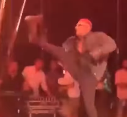 وظهر محمد رمضان في إحدى حفلاته خارج مصر وهو يرقص رقصته الشهيرة، وأثناء رقصه طار حذاؤه في الهواء، ليعود مرة أخرى ويرتديه ويكمل الغناء.