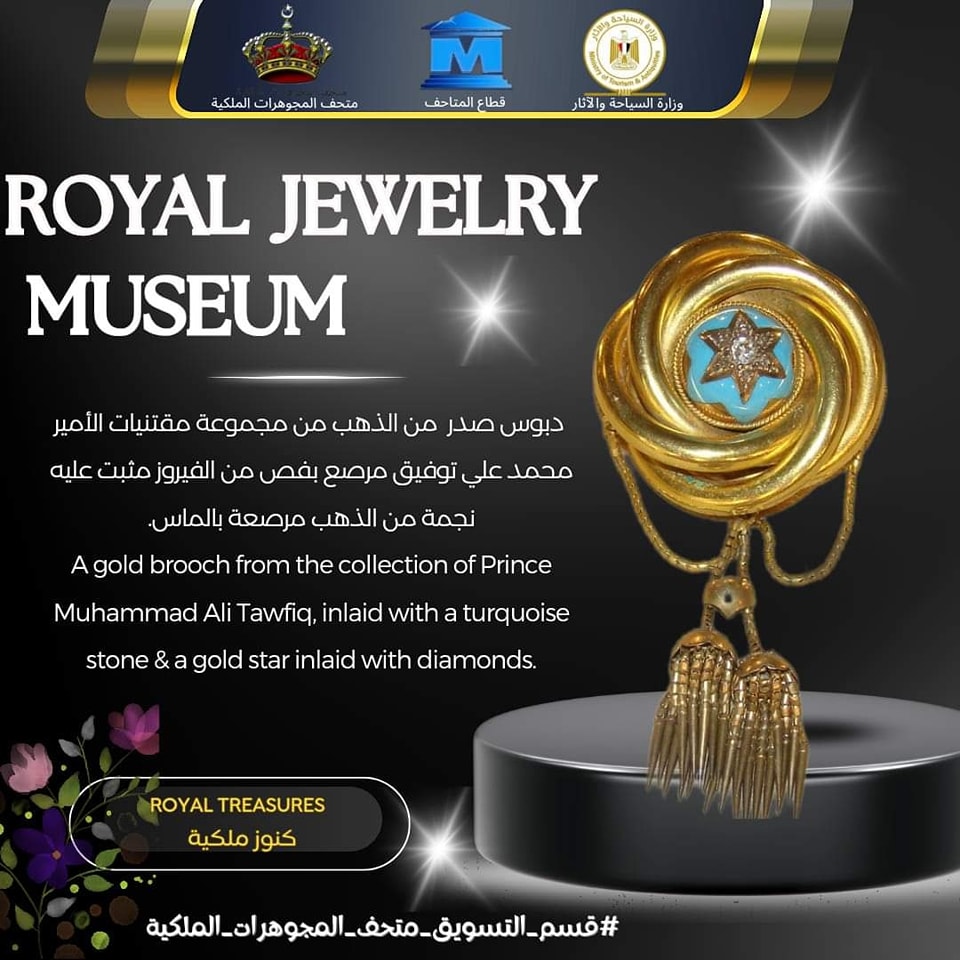 أعلنت إدارة متحف المجوهرات الملكية بالإسكندرية، عرض قطعة أثرية فريدة، وهي عبارة عن دبوس صدر من الذهب، وهو من مجموعة مقتنيات الأمير محمد علي توفيق، وهو مرصع بفص من الفيروز مثبت عليه نجمة من الذهب مرصعة بالألماس.