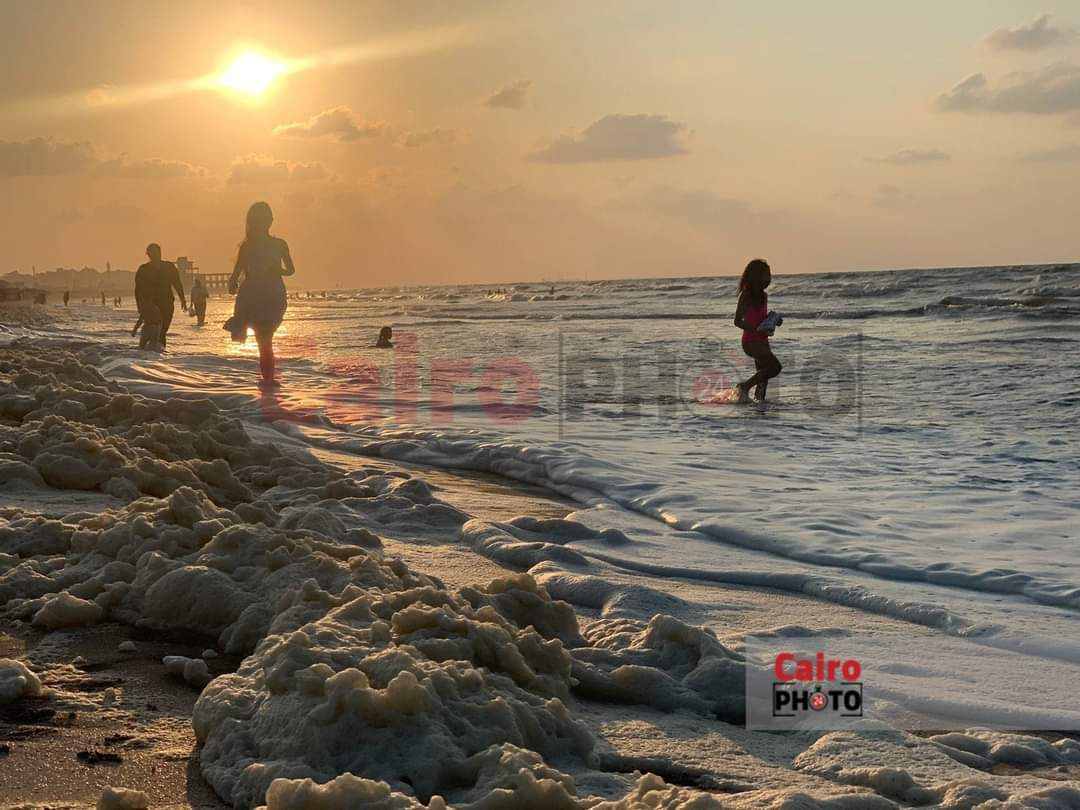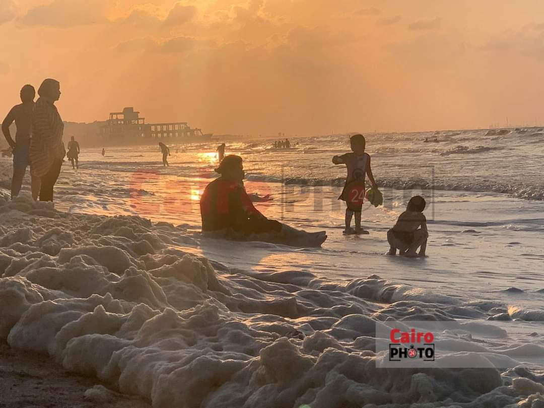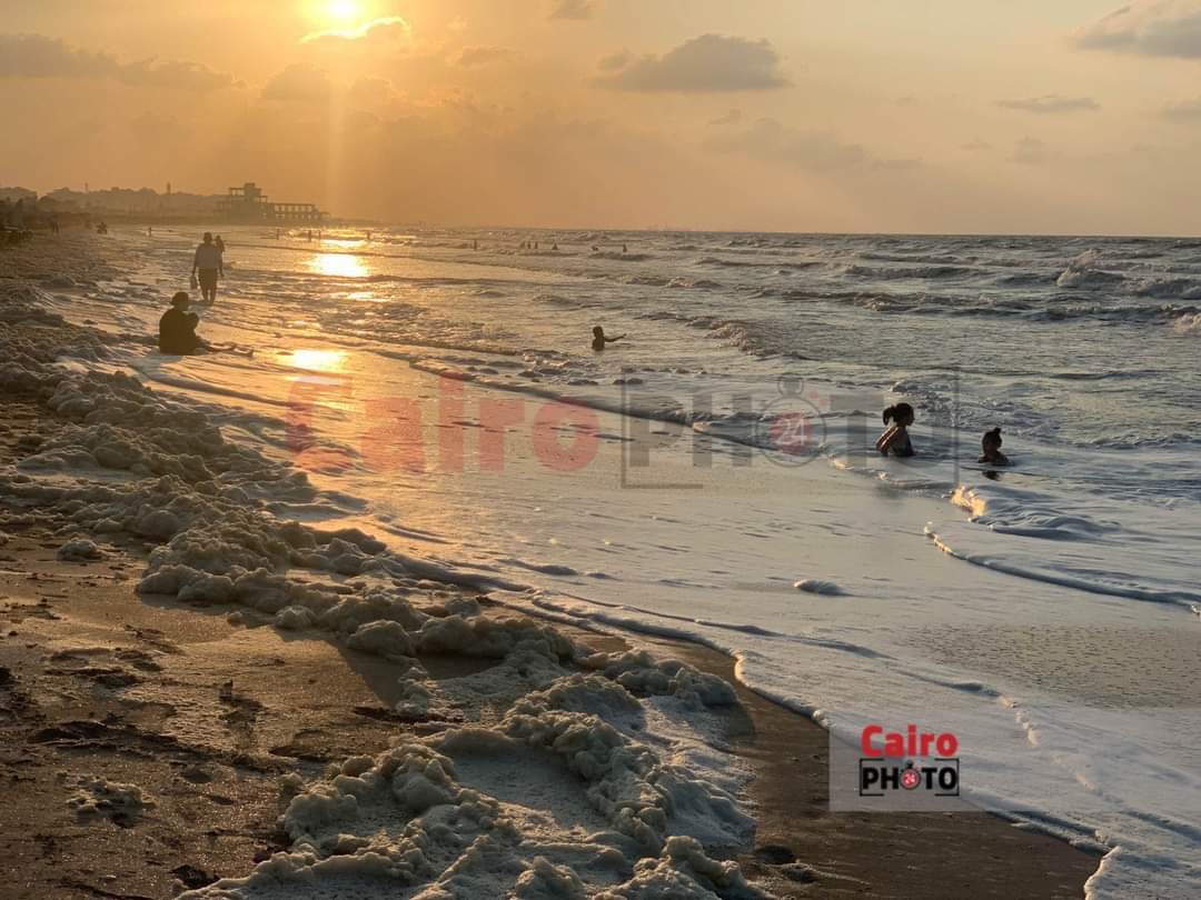 ظاهرة زبد البحر تخطف قلوب المصطافين علي شاطئ بورسعيد