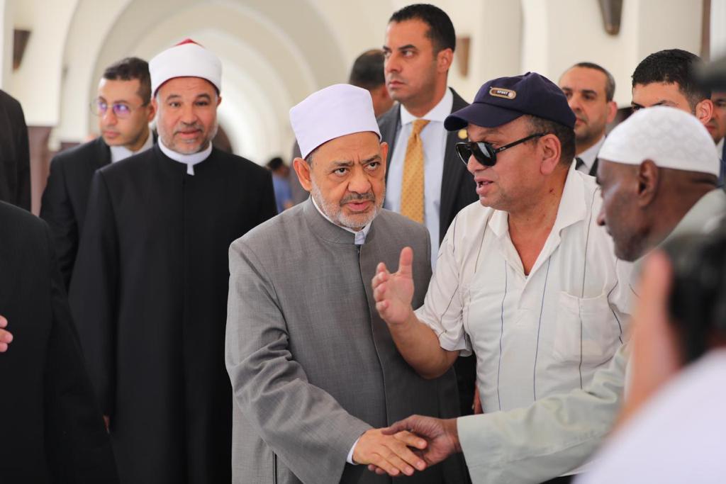وكان في استقبال شيخ الأزهر، الدكتور محمد مختار جمعة، وزير الأوقاف، حيث رافق شيخ الأزهر داخل المسجد مستعرضا أعمال التطوير والتجديدات التي تمت في كل أركان المسجد.