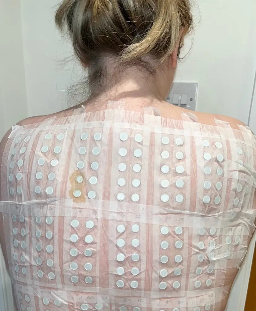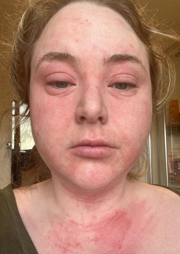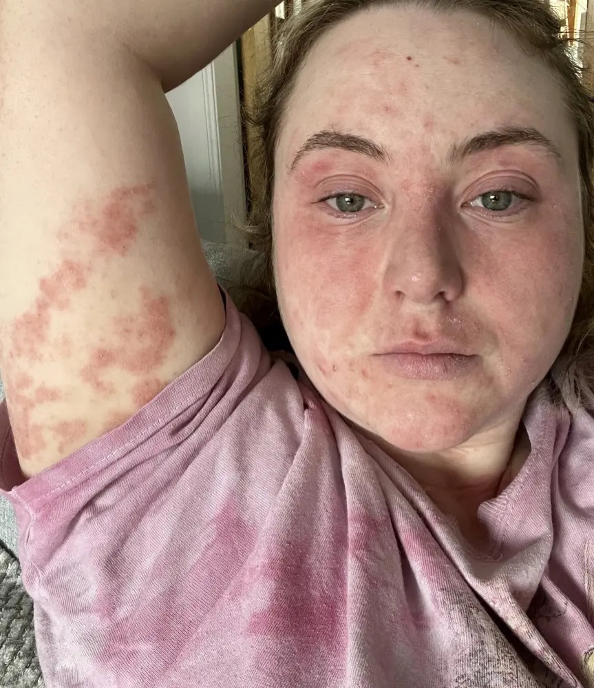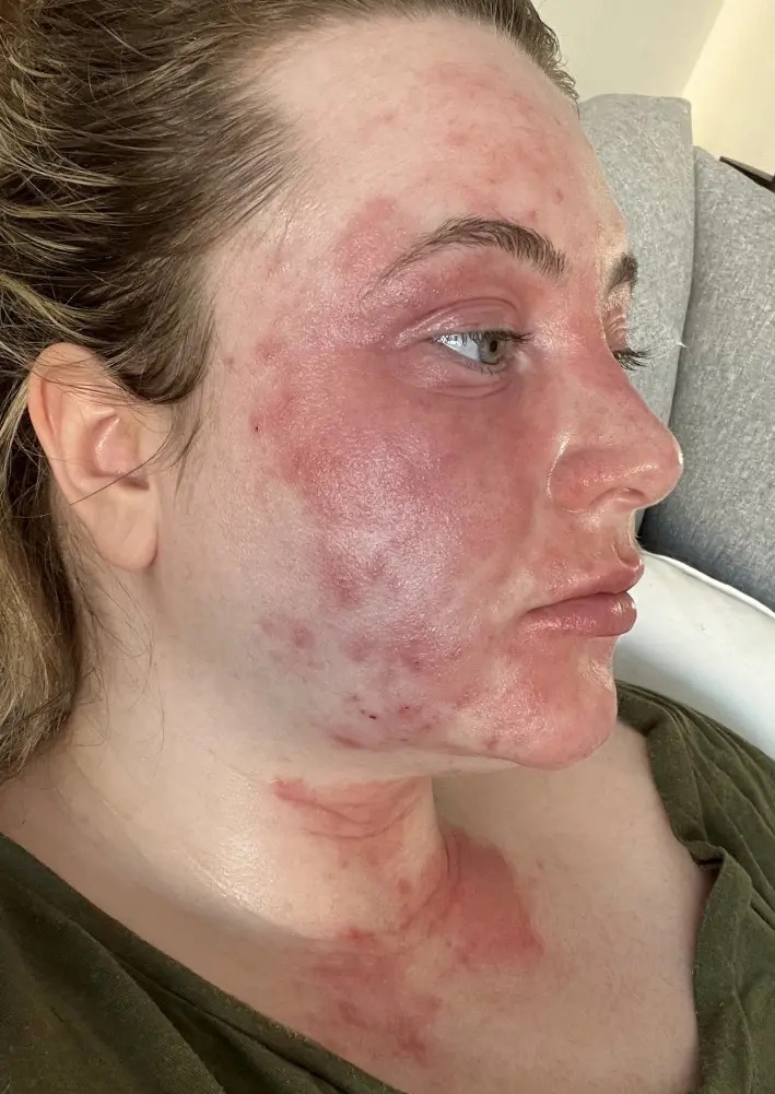 قررت أن تجري فحوصات لمعرفة نوع الحساسية المصابة بها، وكشف فحص الدم أن الالتهابات التي تعاني منها في بشرتها، هي مجرد عرض للالتهابات التي حدثت داخل جسمها وليس على جلدها، وذلك بسبب احتواء لاصقات تبييض الأسنان على مادة الراتنج المزيفة، وهو عبارة عن مادة صناعية، تستخدم كصمغ للصق وتثبيت لاصقات تبييض الأسنان.