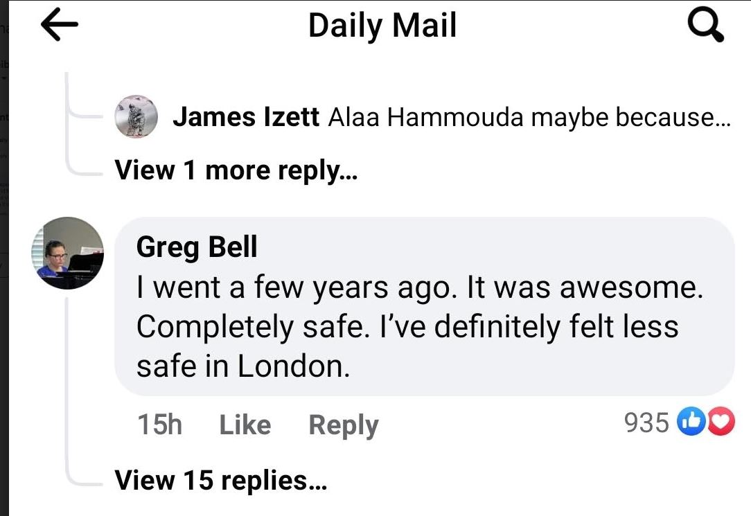 ولم يلبث المنشور دقائق قليلة عبر صفحة ديلي ميل، إلا وكان العشرات من المواطنين من جميع أنحاء العالم ينهالون بالتعليقات للدفاع عن المكان الذي استمتعوا فيه وعاشوا فيه تجربة فريدة من نوعها.