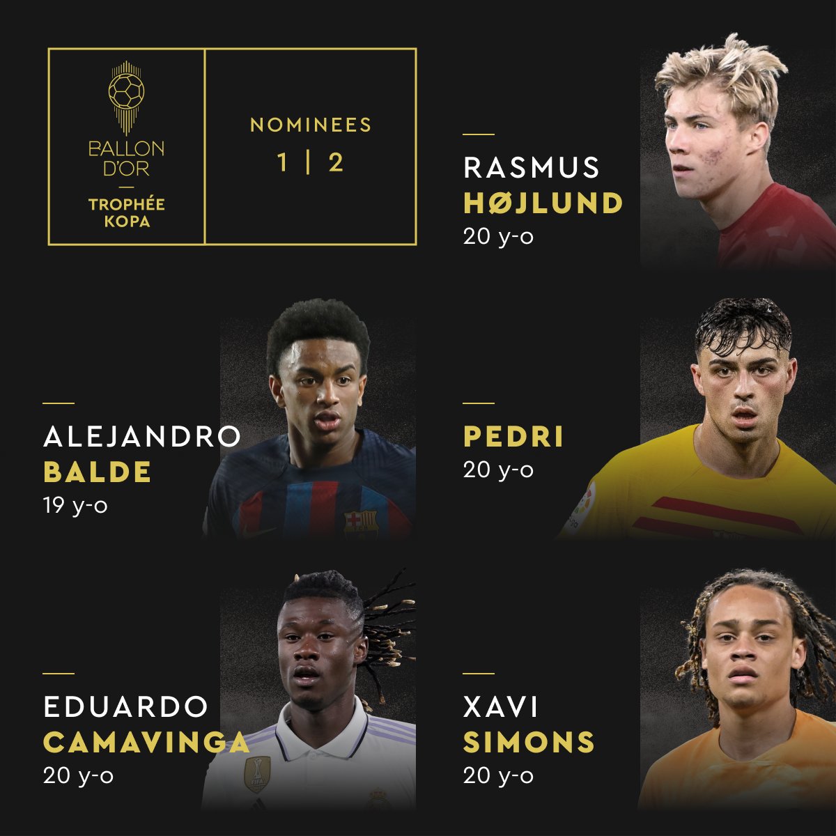 أعلنت مجلة فرانس فوتبول، قائمة اللاعبين المرشحين لجائزة كوبا لأفضل لاعب شاب في العالم لعام 2023، وذلك بتواجد نجوم برشلونة وريال مدريد على رأس القائمة.