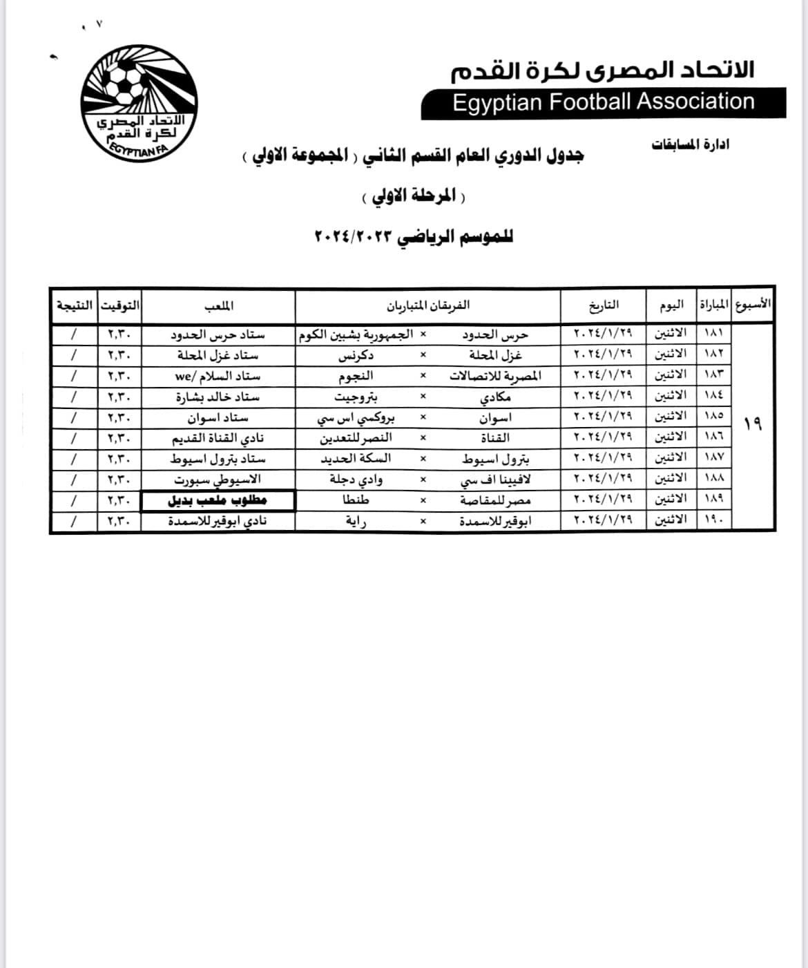 جدول مباريات الدور الأول لدوري القسم الثاني