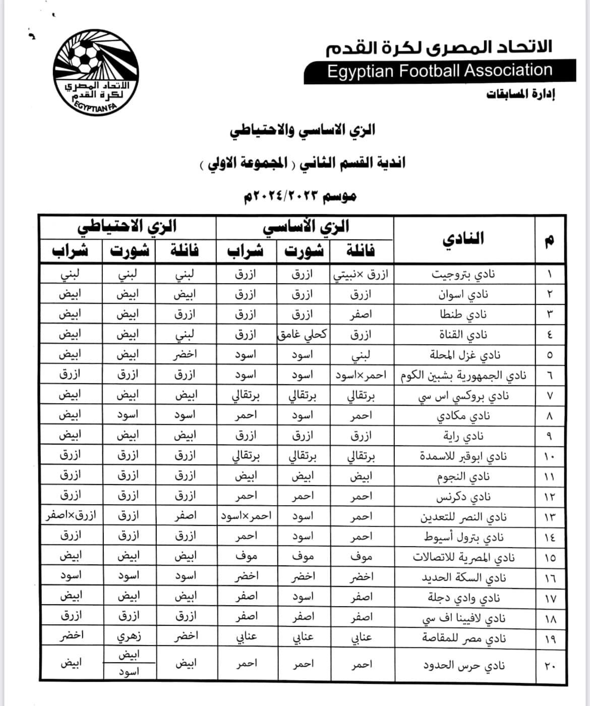 ونشرت صفحة الاتحاد المصري لكرة القدم جدول مباريات الدور الأول لدوري القسم الثاني المحترفين، بمشاركة 20 فريقًا، بالإضافة إلى الزي الأساسي والاحتياطي لكل فريق للموسم الرياضي 2023-2024.