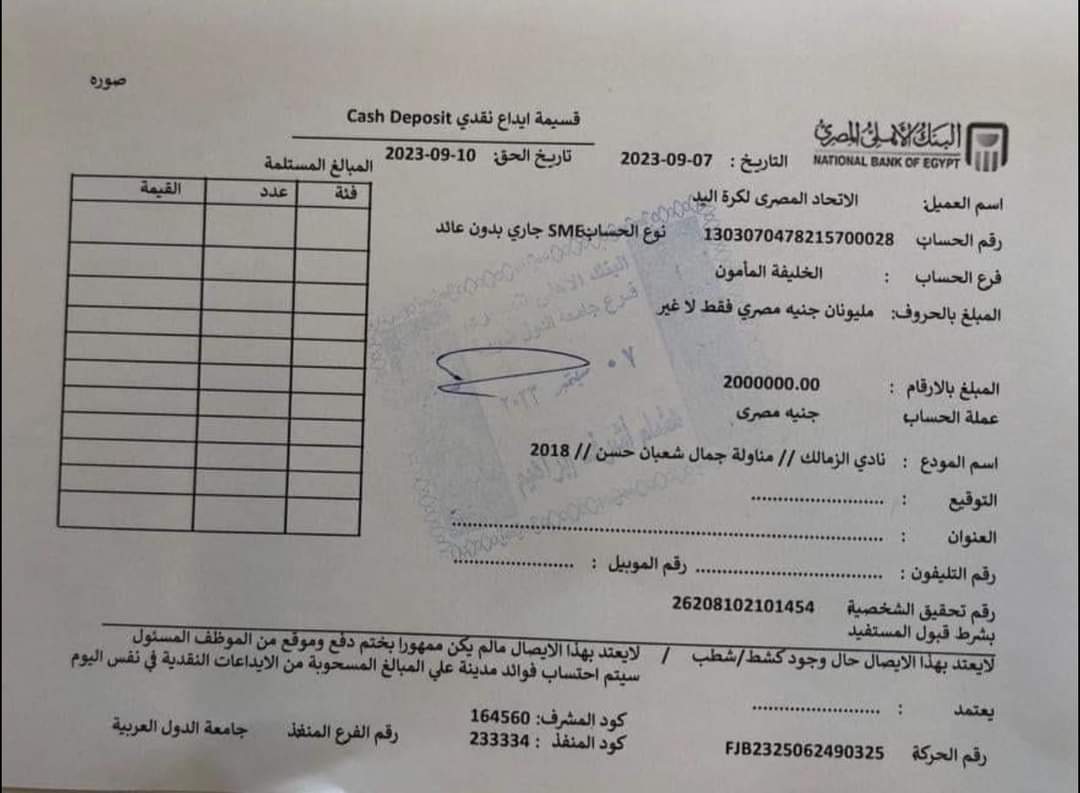 الزمالك يسدد جزءًا من مستحقات اتحاد اليد | مستند