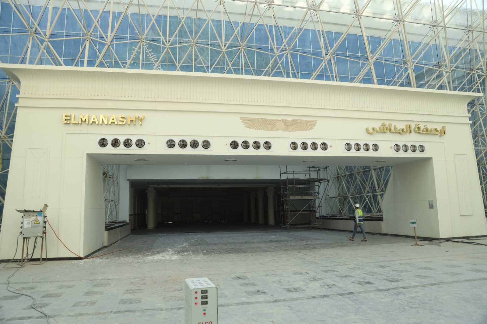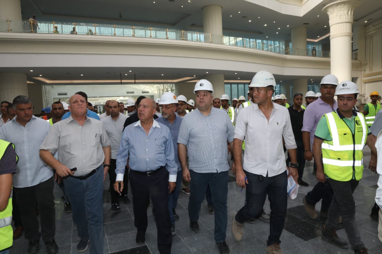 بدأت الجولة بمتابعة جاهزية مبني المحطة الرئيسي المقام على مساحة 31.000 م2 والذي يتكون من دور بدروم سيستخدم كجراج بسعة 250 عربة ودور أرضى يحتوي على جزء تجاري ضمن مول تجاري متكامل بالدور، الأول - الثاني، وأماكن إدارية بالدور الأرضي خاصة بالعاملين بالمحطة بالإضافة إلي 28 شباك تذاكر وكذلك دورات المياه ومنطقة الهرم الزجاجي بالبهو الرئيسي للمحطة، والذي يبلغ ارتفاعه 40 متر، إضافة الى الدورين الأول والثاني للمحطة والذي يشمل محلات تجارية ومناطق استثمارية.