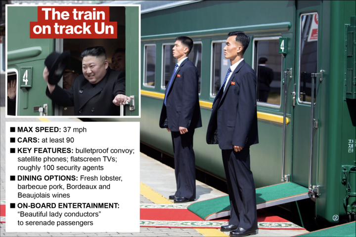 والقطار الخاص بالزعيم الكوري كيم جونج مضاد للرصاص، والقطار بطيء للغاية، ويصل متوسط سرعته إلى 37 ميلًا في الساعة.