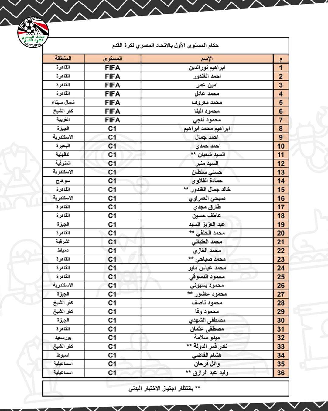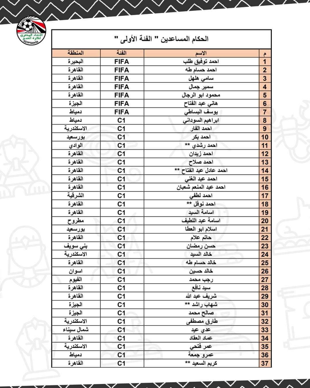 أعلن اتحاد الكرة بشكل رسمي، قائمة حكام التصنيف الأول، والذين سيتم الاستعانة بهم في إدارة مباريات الموسم الجديد من بطولة الدوري الممتاز.