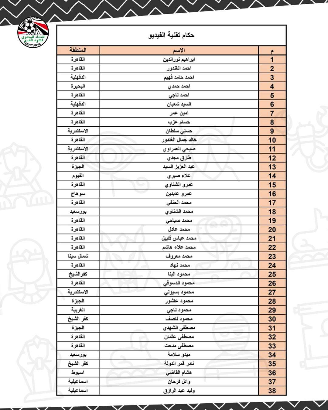 كذلك أصدر اتحاد الكرة قائمة ضمت حكام الفيديو المقرر الاستعانة بهم في إدارة مباريات الدوري الممتاز بالموسم الجديد، وضمت تلك القائمة 38 حكما من الحاصلين على رخصة الـ VAR.
