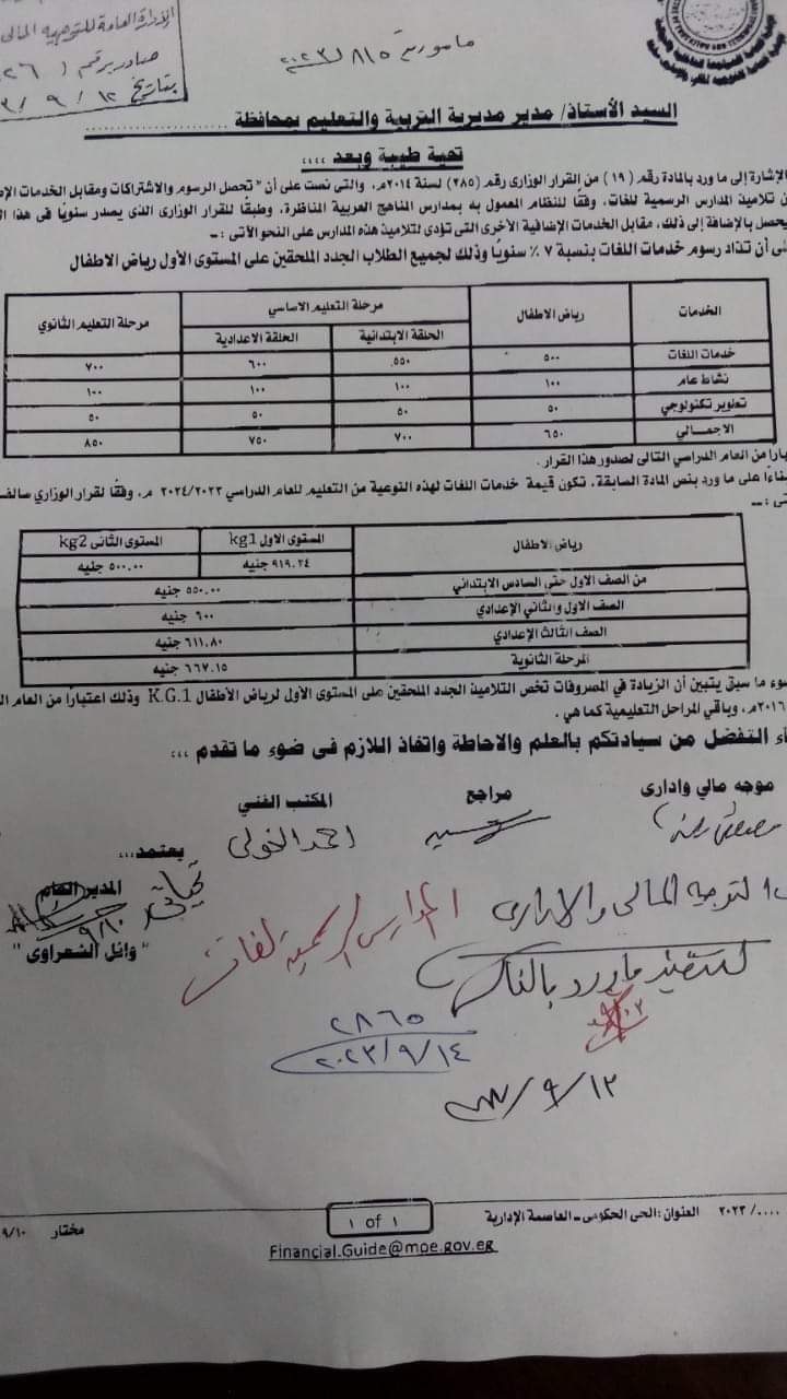 وأكدت الوزارة، على أنه في ضوء ما سبق يتبين أن الزيادة في مصروفات المدارس الرسمية لغات تخص التلاميذ الجدد الملحقين بكي جي 1 اما باقي المراحل كما هي.