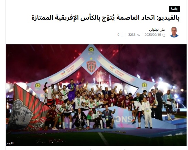 ويرصد القاهرة 24 لمتابعيه، تعليق الصحف الجزائرية على خسارة الأهلي وتتويج اتحاد العاصمة بلقب السوبر الإفريقي، وذلك على النحو الآتي:-