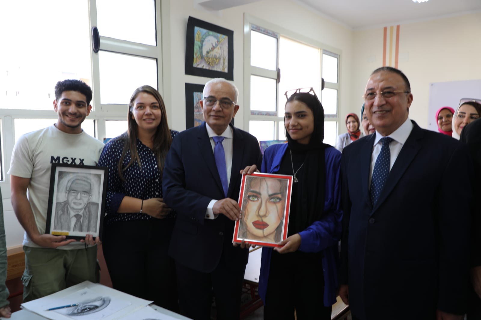 كما تفقد الوزير والمحافظ أعمال الطلاب المصنوعة من الخشب، والأقمشة، والرسومات، والمشغولات اليدوية، والتريكو.