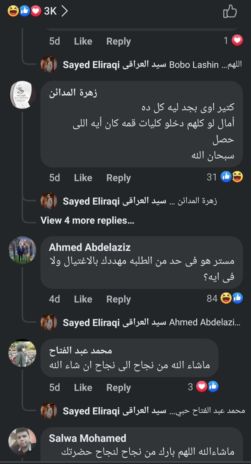 بينما علق آخر ساخرًا على الفيديو: مستر هو في حد من الطلبة مهددك بالاغتيال ولا في إيه؟