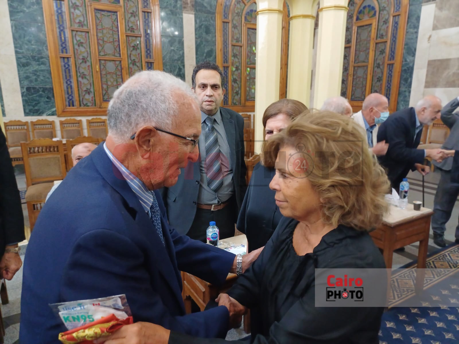 السفيرة مشيرة خطاب تستقبل عزاء زوجها بمسجد عمر مكرم