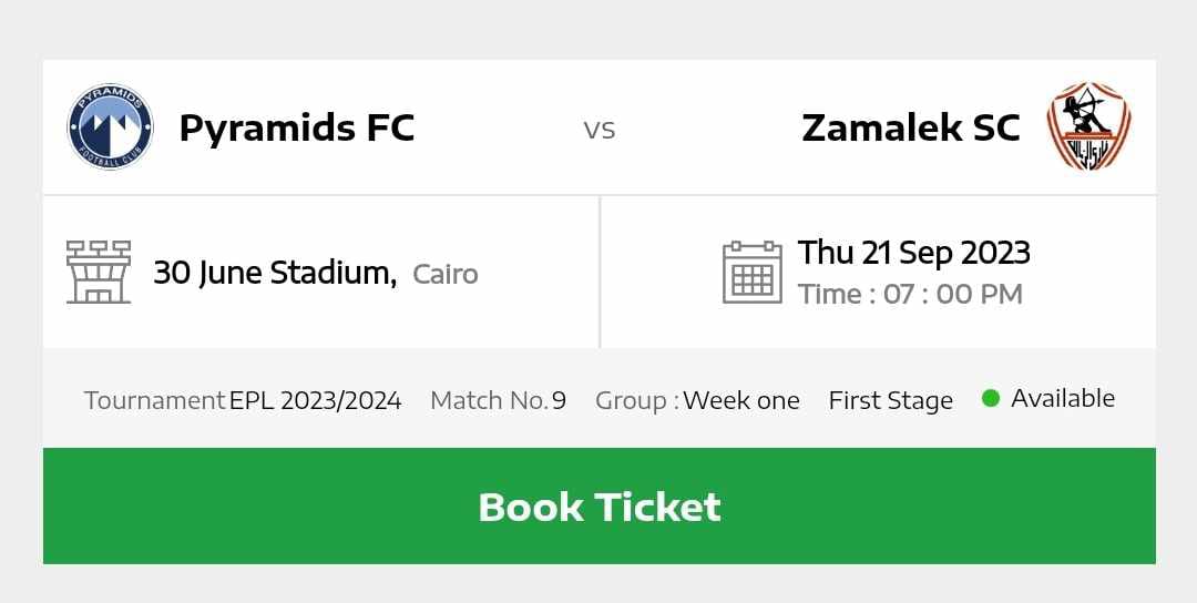 أعلنت شركة تذكرتي، طرح تذاكر مباراة بيراميدز والزمالك والمقرر إقامتها في السابعة مساء يوم الخميس المقبل، في إطار مباريات الجولة الأولي من مسابقة الدوري المصري الممتاز.