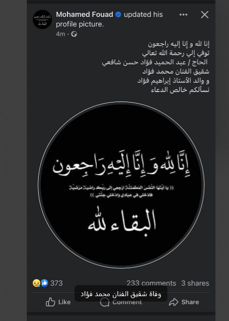 كتب الفنان محمد فؤاد على صفحته على فيسبوك، إن شقيقه قد وافته المنية، وقال:(إنا لله وإِنا إليه راجعون)، توفي إلى رحمة الله تعالى: الحاج عبد الحميد فؤاد عبد الحميد حسن شافعي، شقيق الفنان محمد فؤاد ووالد الأستاذ إبراهيم عبد الحميد فؤاد.