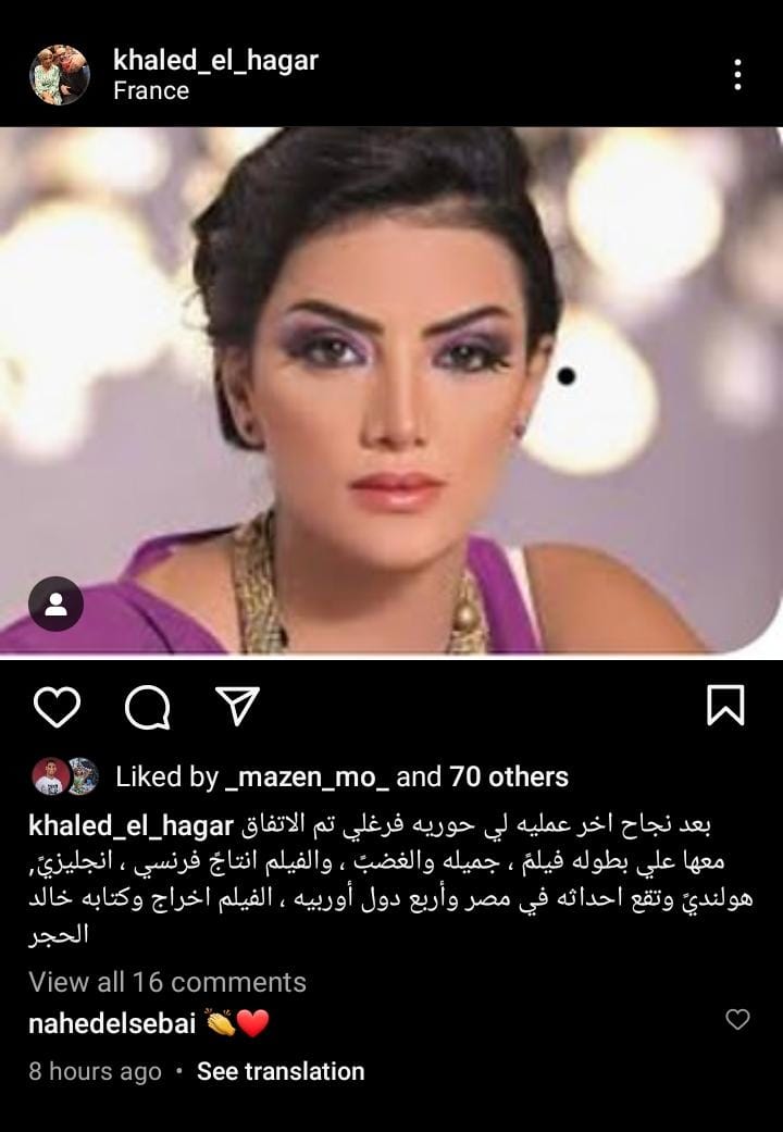 إنتاج فرنسي إنجليزي هولندي.. خالد الحجر يعلن تعاونه مع حورية فرغلي في فيلم جميلة والغضب