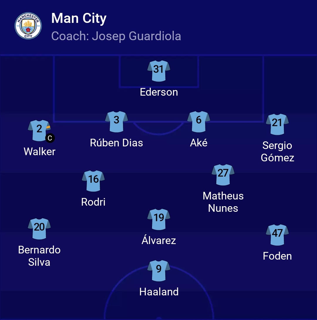 خط الهجوم: بيرناردو سيلفا، فودين، هالاند.