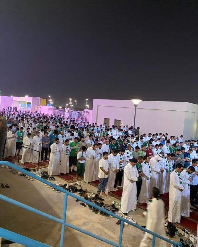 حرصت أعداد كبيرة من جماهير فريق أهلي جدة على أداء صلاة العشاء، وذلك قبل دقائق من انطلاق مباراة فريقها أمام النصر، التي تقام في تمام التاسعة مساء اليوم، وذلك ضمن الجولة السابعة لبطولة الدوري السعودي للمحترفين.