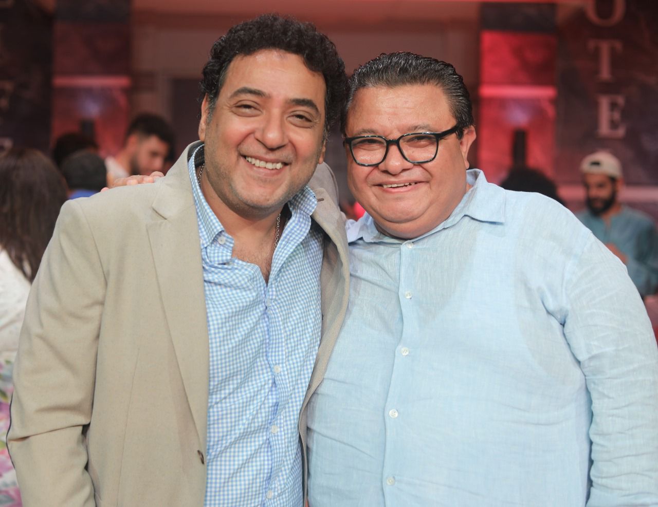 أبطال مسرحية طيب وأمير يحتفلون بحصد مليون جنيه إيرادات بحضور المخرج خالد جلال