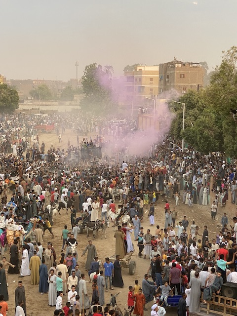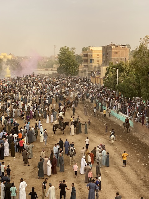 شهدت منطقة منشاة العماري شمال مدينة الأقصر خروج الآلاف بالجمال والخيول والجرارات الزراعية في مسيرات احتفالية بالمولد النبوي الشريف.