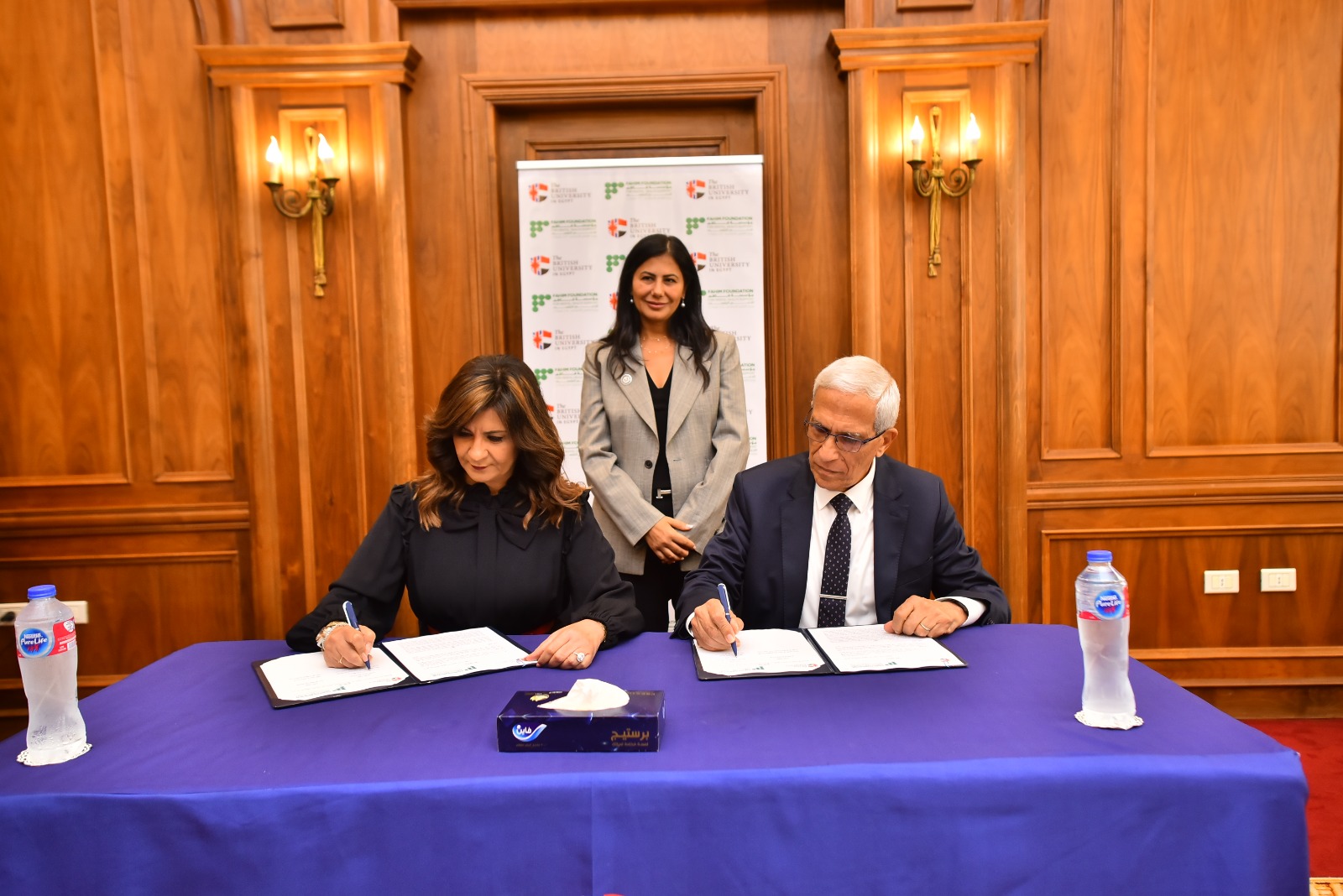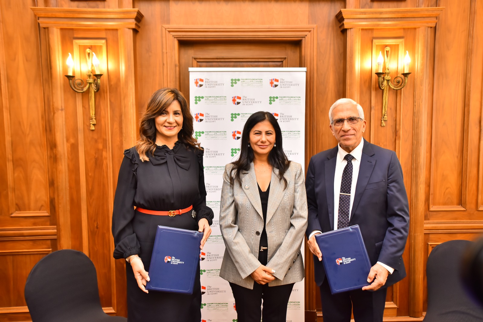 ووقع البرتوكول الدكتور يحيي بهي الدين نائب رئيس الجامعة البريطانية للبحوث والمشروعات، والسفيرة نبيلة مكرم، بحضور ياسمين خميس، عضو مجلس أمناء الجامعة البريطانية في مصر، ولميس نجم، مستشار محافظ البنك المركزي للمسئولية المجتمعية، والدكتورة شادية فهيم عميد كلية الآداب والإنسانيات بالجامعة البريطانية، والدكتور ناصر لوزة، استشاري الطب النفسي، ومدير مستشفى بهمن، ورئيس الاتحاد العالمي للصحة النفسية، والدكتور عبد الناصر عمر أستاذ الطب النفسي ورئيس مجلس الإدارة والرئيس التنفيذي لمستشفى المشفى.
