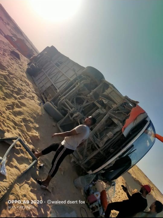 أصيب 5 أشخاص في انقلاب أتوبيس سياحي تابع لشركة خاصة، أعلى منطقة المناجم، بطريق الواحات، إثر اختلال عجلة القيادة من يد السائق.