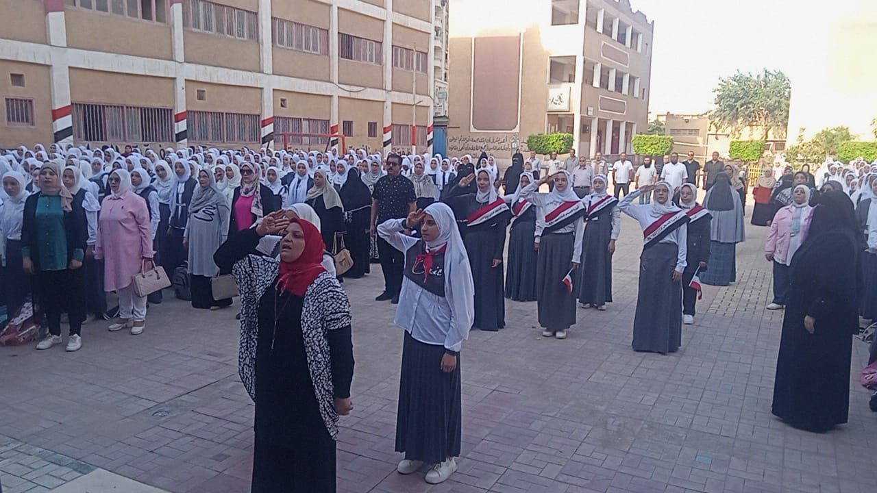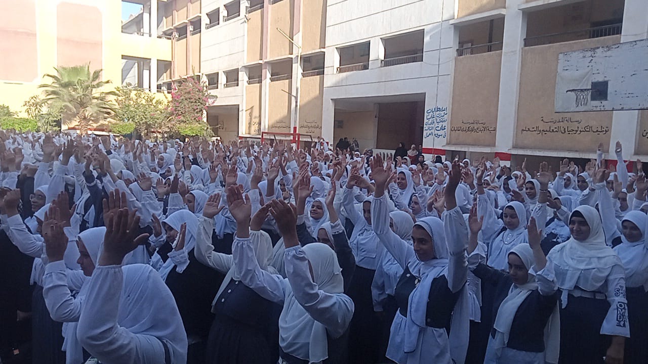 طلاب كفر الشيخ يؤدون تحية العلم وسط نشاط وفرحة ببدء العام الدراسي