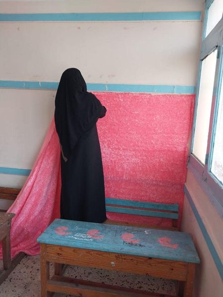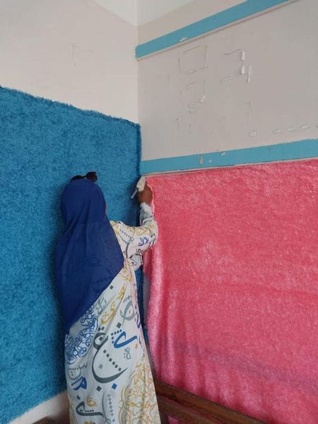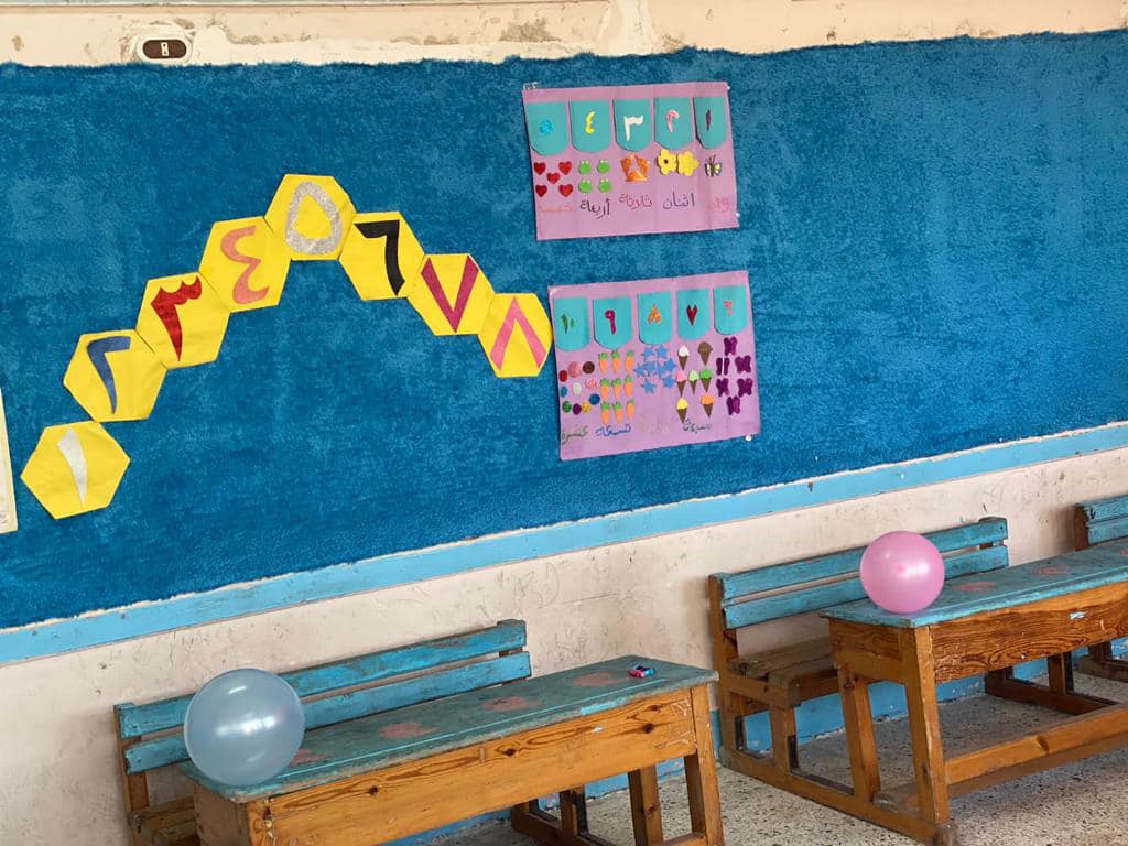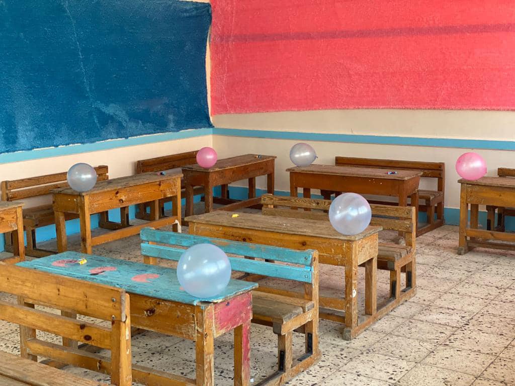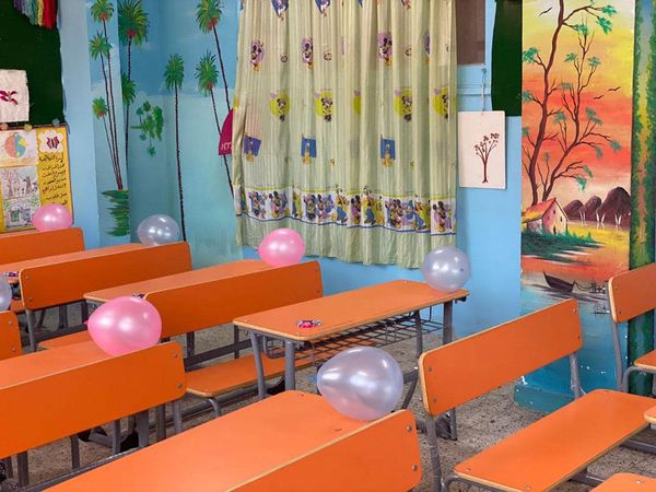 قبل ساعات من بداية العام الدراسي الجديد، أقدم مجموعة من المعلمين في معهد زايد الأزهري بمحافظة الإسماعيلية، بتزيين بعض الفصول بالبلالين واللوحات المزخرفة وتعليق بعض الأقمشة الملونة على الحوائط.