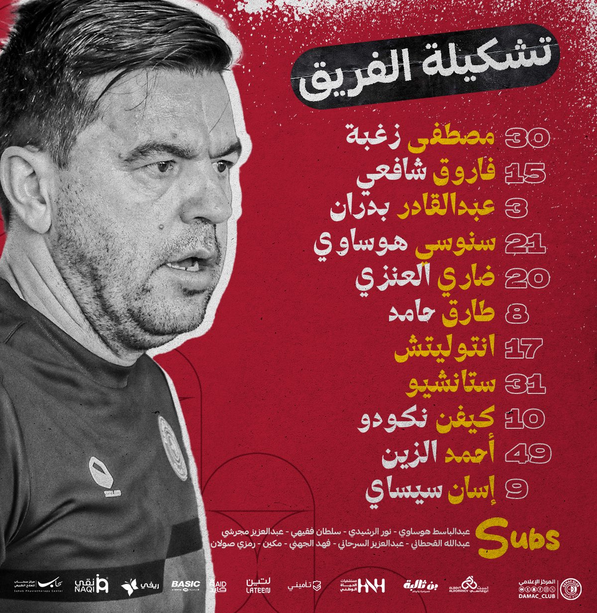 وعلى الجانب الآخر، يشارك الدولي طارق حامد في التشكيل الأساسي لفريق ضمك أمام الخليج، وذلك حسبما أعلن المدرب كوزمين كونترا.