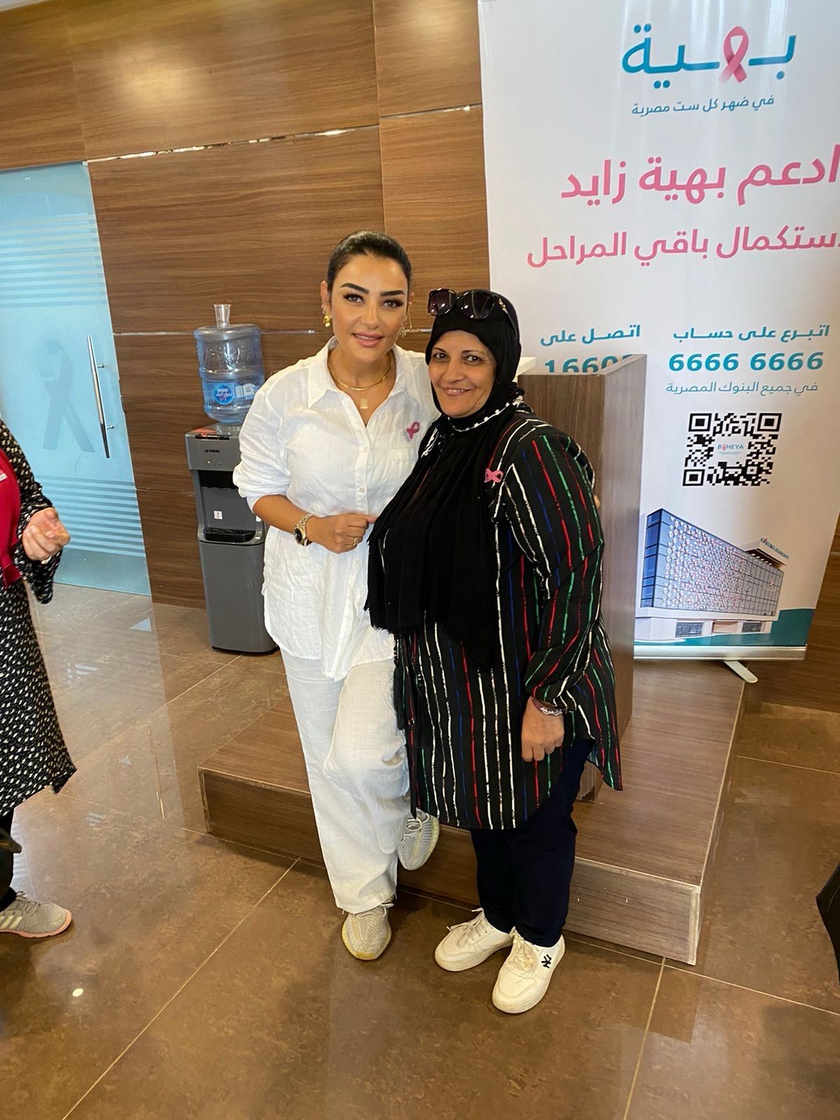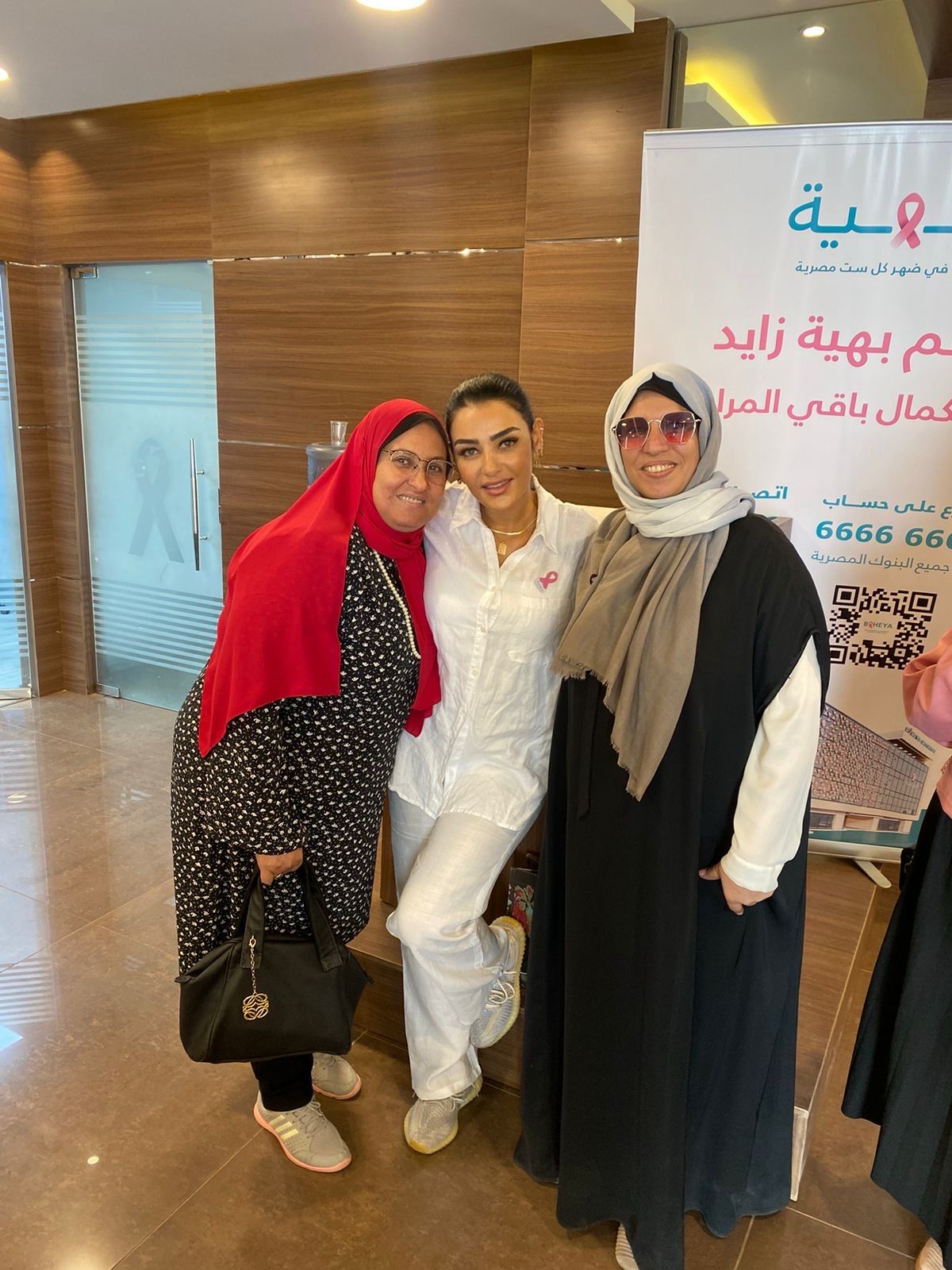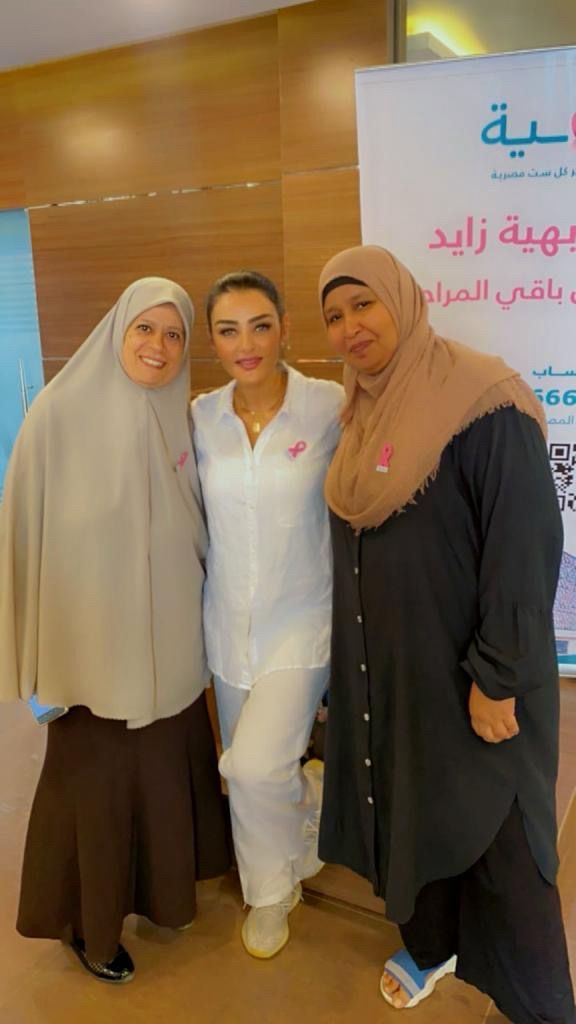 وقدمت هبة الأباصيري، عددا كبيرا من الهدايا لمحاربات سرطان الثدي في مستشفى بهية، كما ألقت كلمات الدعم والمواساة وتمنياتها بالشفاء للمحاربات.