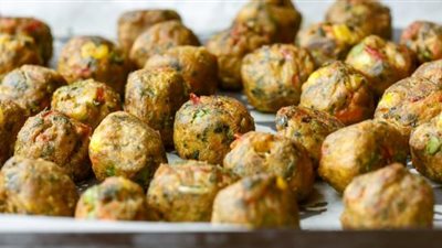 يتم وضع شرائح البانيه المبهرة بطاسة غير قابلة للالتصاق، بها ملعقة صغيرة من الزيت.