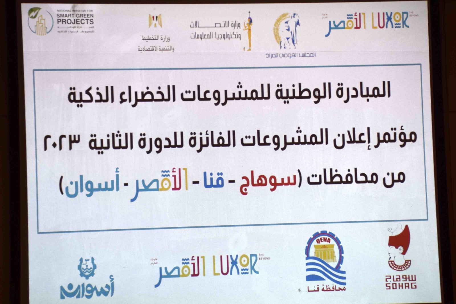 استضافت محافظة الأقصر، اليوم الأحد، المؤتمر الإقليمي للإعلان عن المشروعات الفائزة بالدورة الثانية من المبادرة الوطنية للمشروعات الخضراء الذكية 2023 بمحافظات (سوهاج - قنا - الأقصر - أسوان)، وذلك بحضور المستشار مصطفى ألهم محافظ الأقصر، واللواء طارق الفقي محافظ سوهاج، واللواء أشرف الداودي محافظ قنا، واللواء أشرف عطية محافظ أسوان.