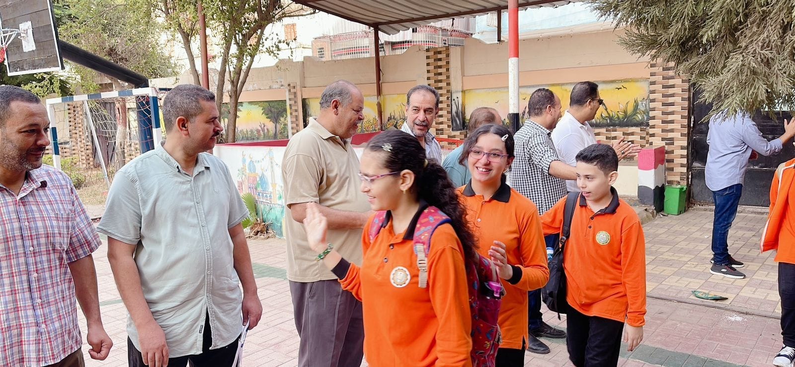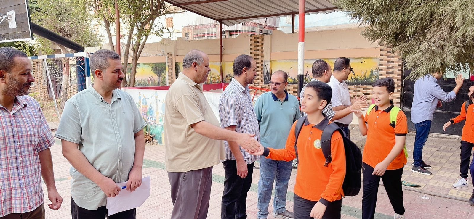 كما صافح المعلمون الطلاب والطالبات، وسط فرحتهم بحسن الاستقبال.
